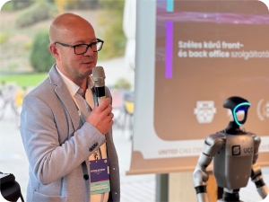 The humanoid robot assistant supported Balázs Kopcsó’s presentation, adding a futuristic and interactive layer to the experience, a vivid demonstration of how humans and machines can work together to redefine customer engagement.